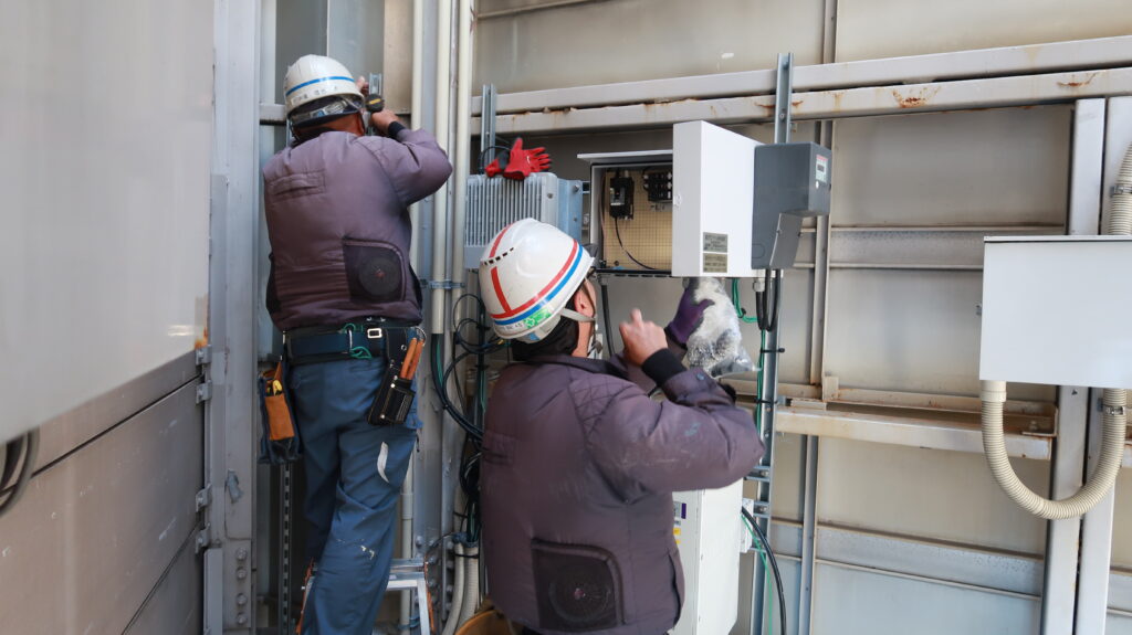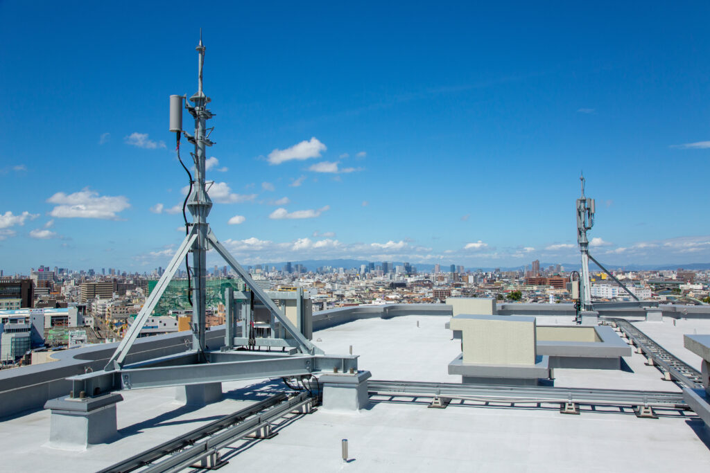 当社は、その基盤となる携帯基地局の設置工事および保守・点検を行っています。ビル屋上から鉄塔まで、あらゆる現場に対応し、最新技術の導入も積極的に推進しており、安全と確実性を第一に、施工から保守まで責任を持って対応し、地域の通信環境の安定に貢献しています。
